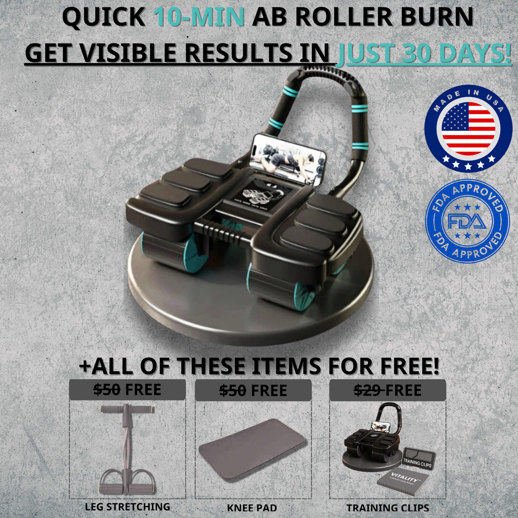 The Vilatity™ UltraFit Ab Roller is designed for all fitness levels, from beginners to advanced users. With just 10 minutes a day, you can start seeing noticeable improvements in your core strength and posture. Many users report significant results within just 30 days!
